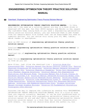 Download ENGINEERING OPTIMIZATION THEORY AND PRACTICE SOLUTION MANUAL Paperback